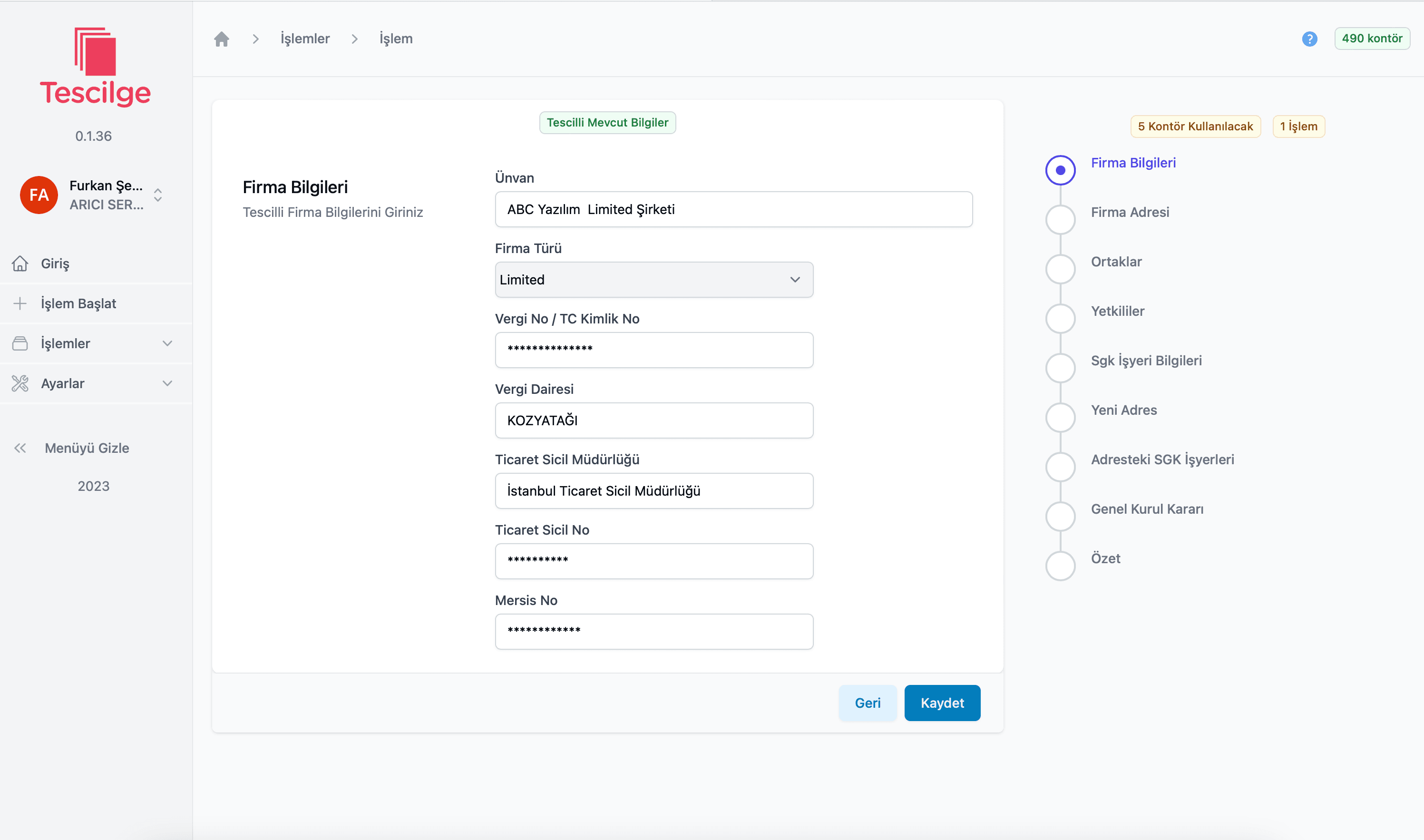Ücretsiz KaydolTicaret Sicil İşlemleri